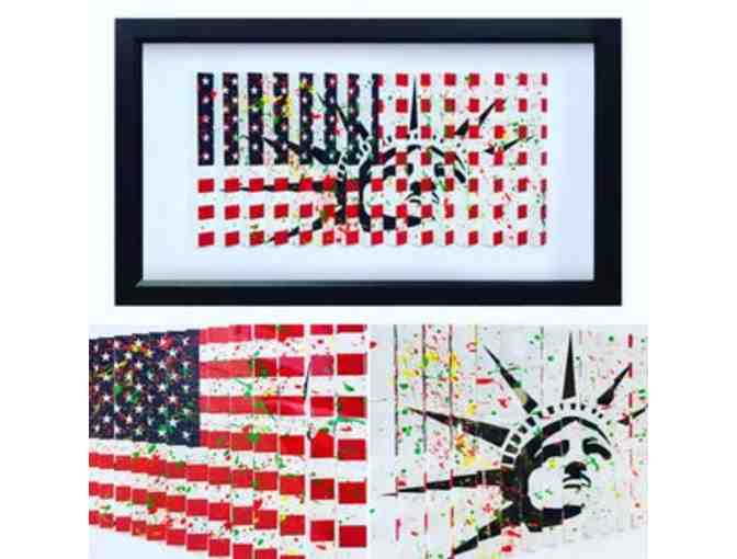Born and raised in Los Angeles, E.M. Zax is taking art to another dimension. With a keen eye for color, composition and interplay of images and the ideas they conjure, Zax is breaking the mold of what has been done in the past. As you walk towards the work or move from one angle to the next, the work comes to life and changes based on your perspective. Whether it is Love and a heart, the star of liberty, the peace sign and love, the free-flowing design and color composition is harmonious and superbly coherent.