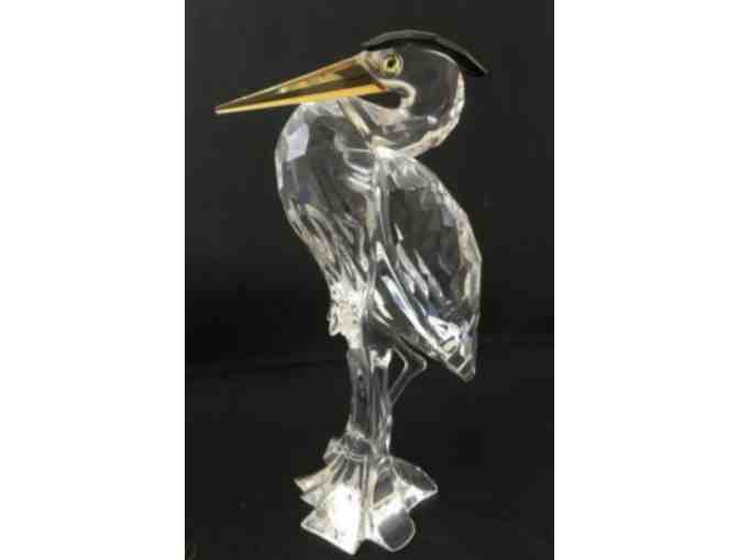 This retired Swarovski crystal silver heron was part of the “Feathered Friends” theme group. The silver heron has an amber beak and has black feathers on the top of its head, the rest of the heron is made from clear crystal. Designer Adi Stocker. Issued 1998, retired 2007.