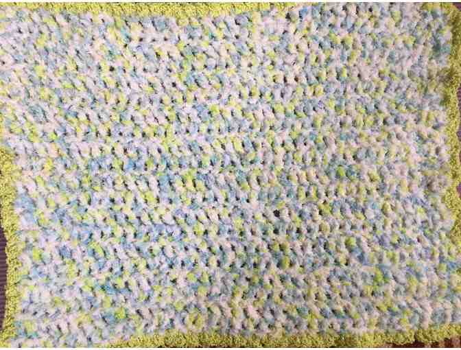 Artist Chaya Poretsky crocheted the baby blanket which is available in yellow and white