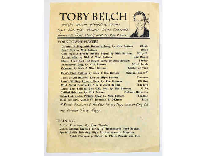 Shakespeare's "Toby Belch" headshot and resume from Something Rotten!, signed by Adam Pascal