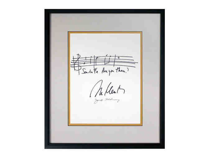 Handwritten and signed "Santa Fe, are you there?" musical phrase from Newsies