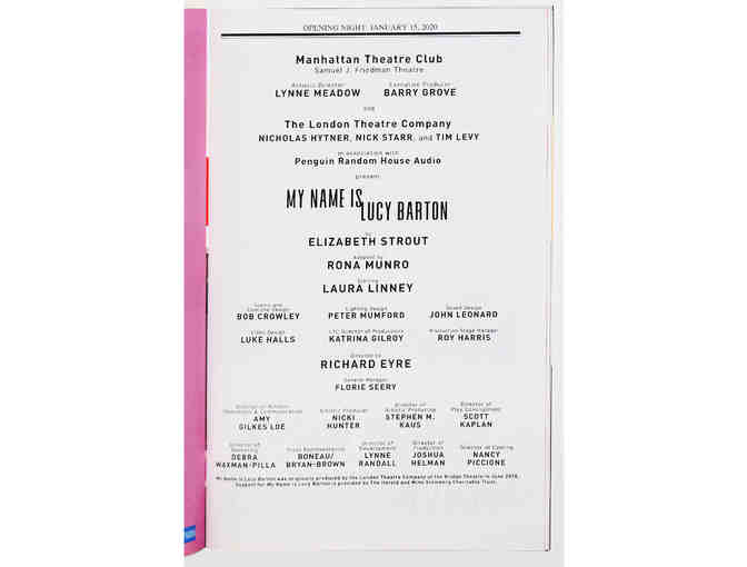 My Name is Lucy Barton opening night Playbill, signed by Laura Linney