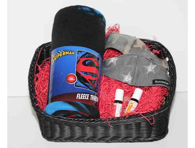 Superman Fleece Blanket, doTERRA Children's Oils "Brave & Stronger", 2 Children's Masks, Grey Star & Camo.