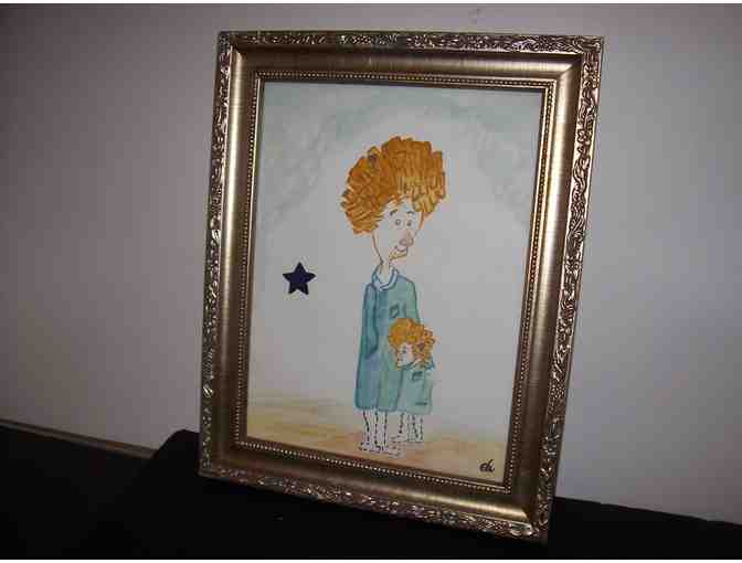 Framed Original Artwork "Father and Son Sharing a Hug". A watercolor by Ola Gilkey. 11.5"x13" Framed.