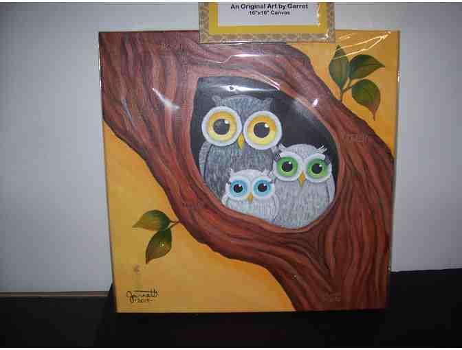 Original Art "The Owl Family" By Garret. An original hand painted acrylic on canvas. 16"x16"
