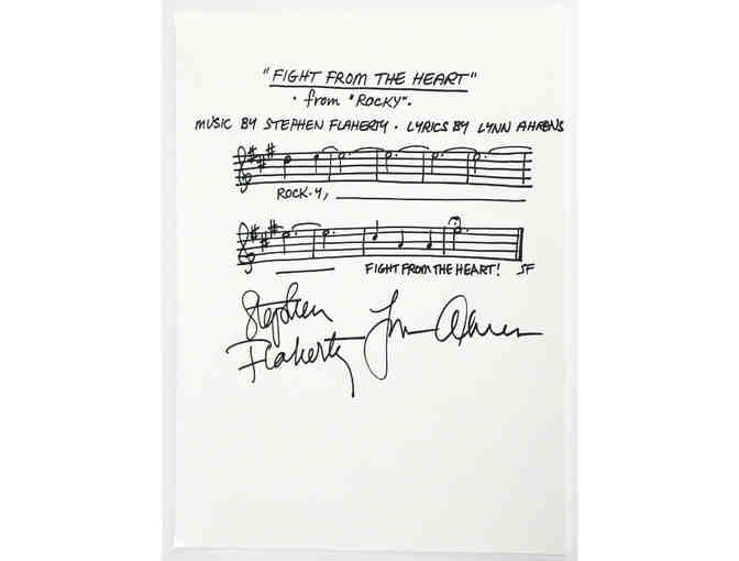 "Fight From the Heart" musical phrase from Rocky, handwritten and signed by Lynn Ahrens and Stephen Flaherty