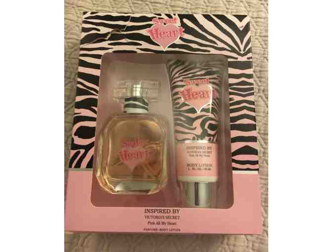 Eau De Parfum Spray 1.7 Fl. Oz. and Body Lotion 2.7 Fl. Oz. This product is inspired by Victoria's Secret Pink All My Heart.
