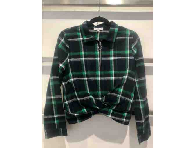 Women's Flannel Twist-Front Pullover with Half Zip by Almost Famous