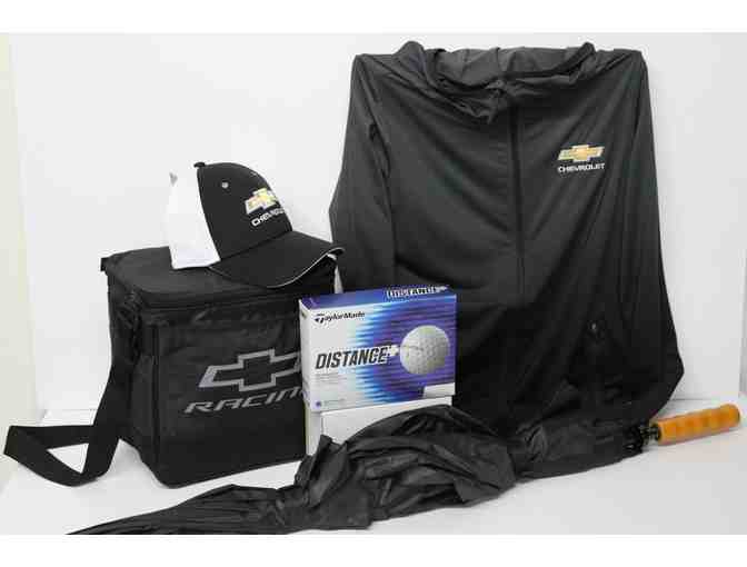 Women's Chevrolet Golf Package Includes: Golf Umbrella, Chevy Cap, Cooler, 1 Dozen Taylor Made Golf Balls, StormTech H2X Dry Hooded Pullover Jacket (Women's M).