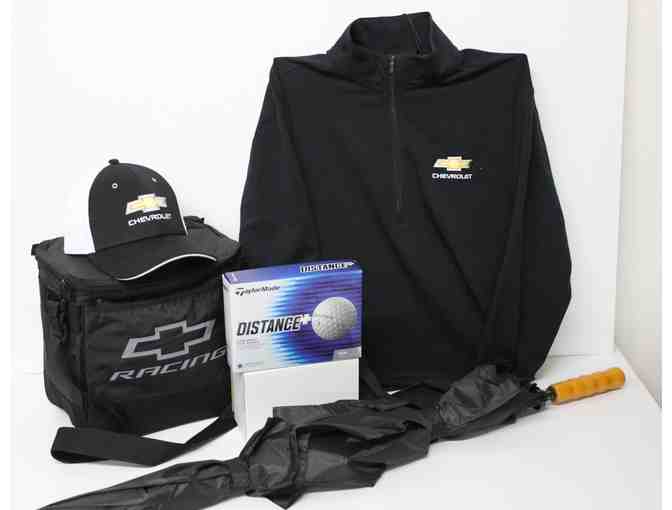 Golf Umbrella, Chevy Cap, Cooler, 1 Dozen Taylor Made Golf Balls, OGIO Pullover Jacket (Men's M)