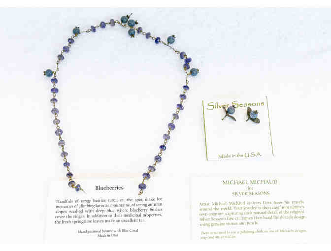 Consider this one-of-a-kind, handcrafted jewelry set made of patinated bronze and blue coral designed to resemble blueberries.