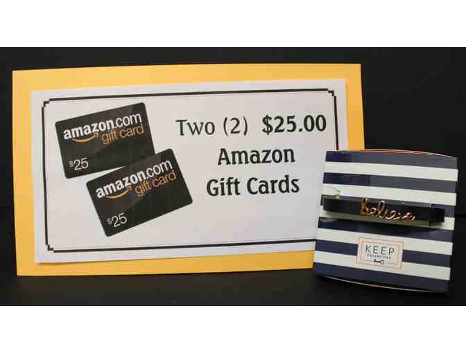 2 - $25 Amazon Gift Cards and Believe Bracelet