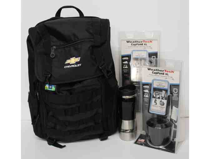 Chevy Black Backpack, Chevy Cap, 2 Weather Tech CupFone XL, Hot Beverage Tumbler.