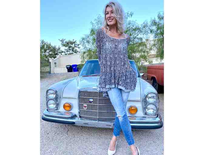Two Toned Demin/Champagne Tunic With Beautiful Pucker Lace. (Size M)