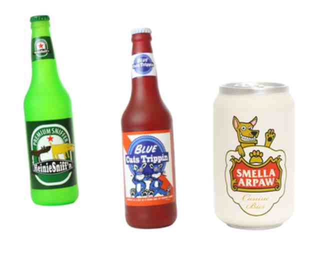 Silly Squeakers- Beer Bottle Heinie Sniffer and Blue Cat Trippin w/ Beer Can Smella Arpaw