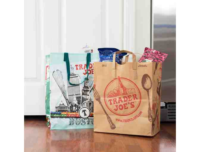 2 grocery bags full of assorted non-perishable items from Trader Joes.
