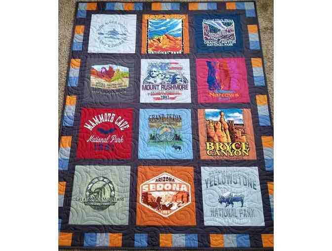 Machine made and quilted throw, custom design for winner based on the t-shirts they'd like to use to create this memorable and personalized item.