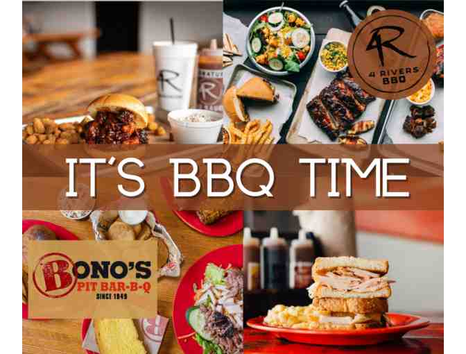 This package includes dinner for two at 4Rivers Smokehouse and a $30 gift card from Bono's Pit Bar-B-Q and an assortment of their signature sauces.