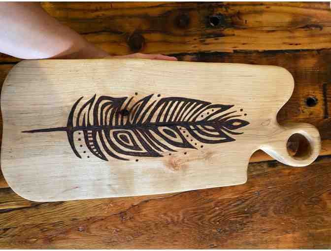 This hand carved maple cutting board with a feather by 2 Spirit Ojibway artist Patrick Hunter of Patrick Hunter Art & Design will look amazing in any kitchen or make a beautiful collector's item.