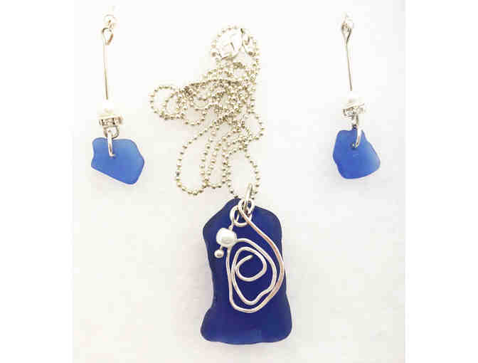 Lovely and rare deep blue beach glass necklace & matching earrings