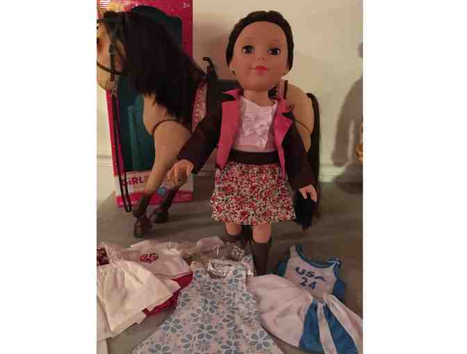 New Girlfriend's 18" doll with four new outfits and a slightly used horse. Perfect for a little girl who loves horses!