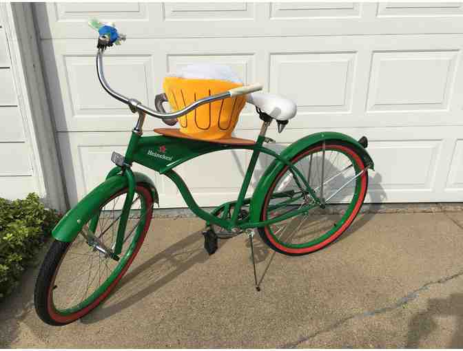 Amazing men's green bike with kickstand with Heineken emblem.