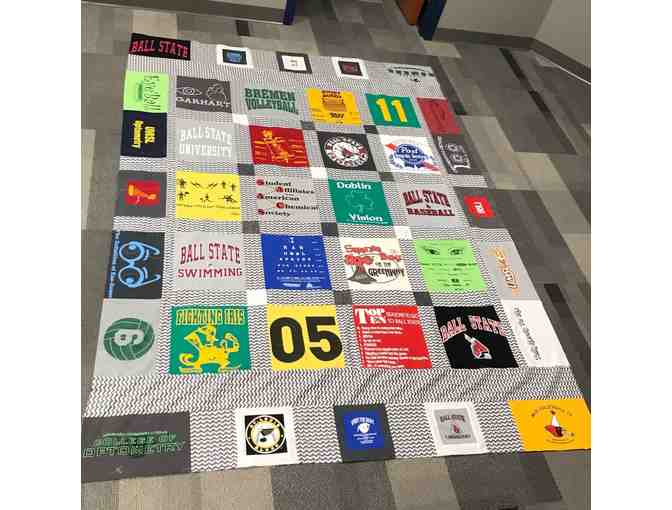 A 50" x 60" custom t-shirt blanket will be created; you supply the fabric.