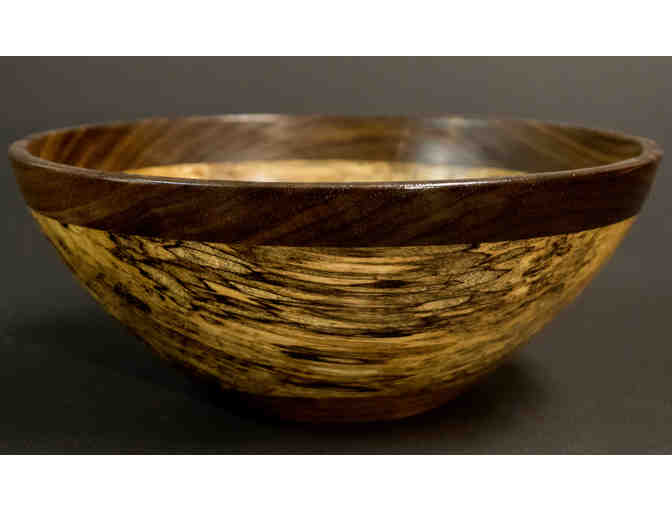 Gorgeous spalted maple and wenge handturned bowl made by artisan and ADK Member, Michael Jensen. Wenge is a dark brown African wood.
