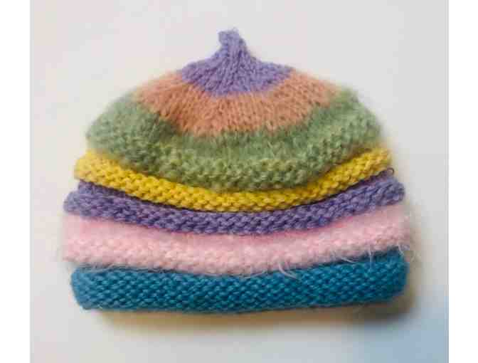 This wonderful, warm soft stretchy handknit wool hat for a child is beautiful and practical at the same time.  Hand crafted by talented Sonoma County knitter Jacquie Biavaschi from organic wool.