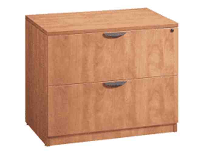 30" wide natural 2 drawer lateral residential file. Accommodates letter or legal size files, and drawers lock for security. Value $135.