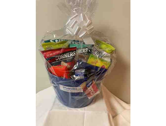 Movie night theme basket: including 4 AMC tickets plus snacks, candy, new Wyandot Logo shirt, fold up shopping bag and bag clip.