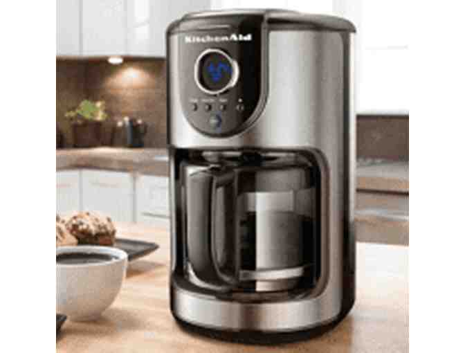 KitchenAid Blade Onyx Black Coffee Maker: 12-Cup Glass Carafe Coffee Maker with Removable Water Tank, 1-4 cup brew cycle, pause/serve feature, flat bottom brew basket presents a uniform bed of coffee to allow for even extraction, no spill, no drip carafe, refined brew process for optimal coffee flavor, 24-hour programmability, variable brew strength selector, clean alert, extra-large digital display and clock with variable brew strength selector, replaceable charcoal filter, gold-toned filter, auto shut-off, showerhead design, Onyx Black ( Kitchen Aid - KCM111OB ).