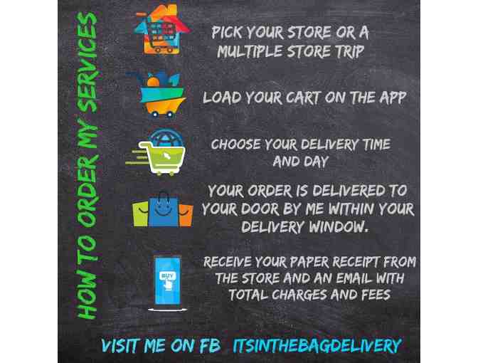 Enjoy a certificate for It's in the Bag delivery service. A local personal shopping expert will purchase your groceries, household supplies, pick up your Fedex package, or pick up medicine for your sick child. The personal shopping area includes Bedford, Indiana and tri-county area.