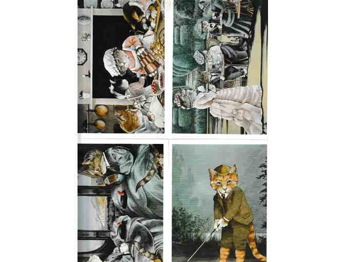 Copyright in 1991 by Susan Herbert, these Victorian cat postcards were printed in England. They measure 6.5" by 4.75". Very good condition with unwritten backs. 14 cards total.