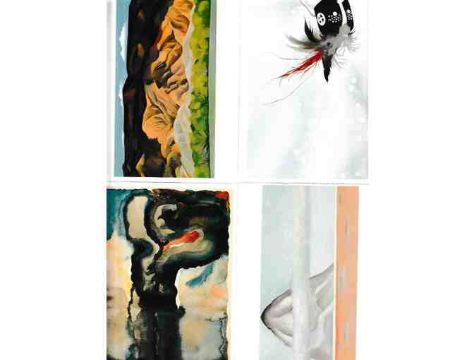 25 oversized postcards showing works by Georgia O'Keeffe. Measure 6.5" by 4.75". Unwritten backs. Excellent condition. There will be an additional $2.99 fee added to this order for shipping and handling.