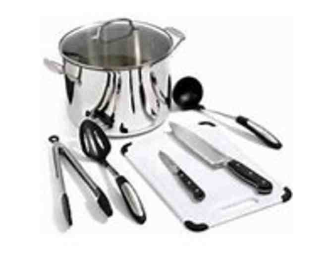 Use Cuisinart's Chef's Classic Stainless cookware 8 piece soup and simmer set that includes a 10 quart stockpot with essential tools