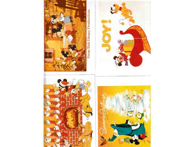 Copyright in 1991, these 21 oversized postcards show the fronts of Christmas cards sent by Walt Disney Company from 1935-1983. Unwritten backs. Very good condition.