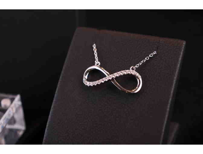 The infinity necklace is set with LaFonn's signautre Lassaire simulated diamonds in sterling silver, bonded with platinum including 17 stones with a total .24 carats