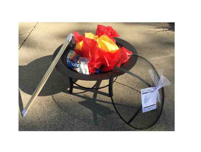 Fire pit filled with all the fixin's to make s'mores!