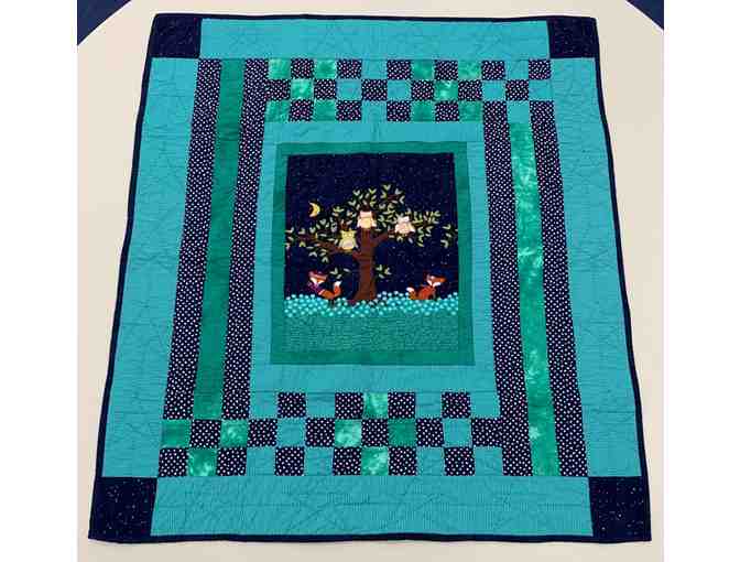 Quilted Table Topper With Owls and Foxes