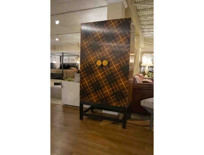 Jonathan Charles Tartan Haberdashery Chest. Made from many exotic woods and inlays.