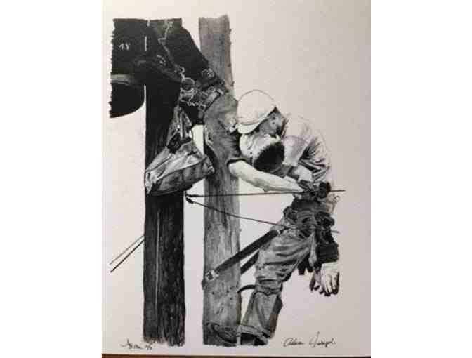 "For my father's 55th birthday, I decided to paint him a powerful image that related to his trade. When I found this Pulitizer Prize winning photo of a lineman performing CPR on his apprentice. The uttility worker, J.D. Thompson was able to revive Randall G. Champion. I found the image striking and perfect for my father's office. Before he could frame it, he suffered a stroke and never recovered. This powerful moment has come to mean a lot more.