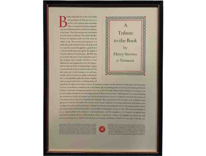"A Tribute to the Book" by Henry Stevens of Vermont - Stinehour Press Broadside Print