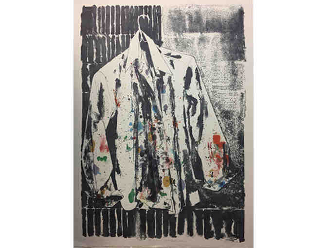 A large lithograph from a series about work clothes and aprons. 32X43 inches.