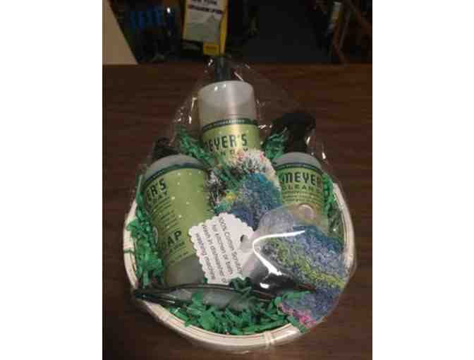 If you haven't heard of Mrs. Meyer's, you're missing out. These products smell amazing and clean like crazy! This basket of goodies includes hand soap, dish washing liquid and room spray in Iowa Pine sent. Also included, are (3) 100% cotton scrubbies for kitchen or bath.