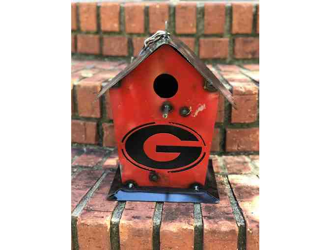 Go Dawgs! Bid on this rustic red metal Georgia Bulldogs bird house.