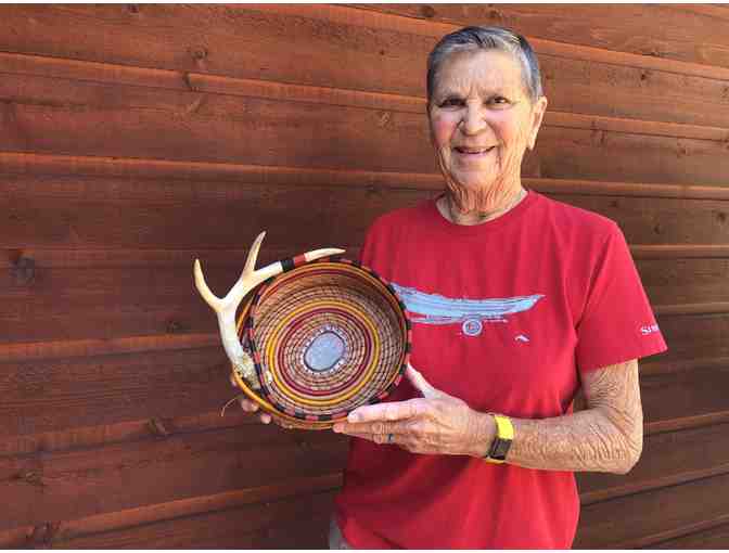 This basket is priceless not only because of its handcrafted beauty but because of the amazing woman who made it. Julie Shoush of Corvallis, MT created this basket using a found antler shed supplied by friend Peg Miskin. Two weeks after delivering the basket to Peg for the Cast One for Hope, Julie passed unexpectedly from complications of heart surgery. She had been a beloved volunteer with CfR's Central California/Nevada program for years before moving to Montana. Julie was an avid fly fisher, loved to travel and ride her motorcycle on roadtrip adventures.