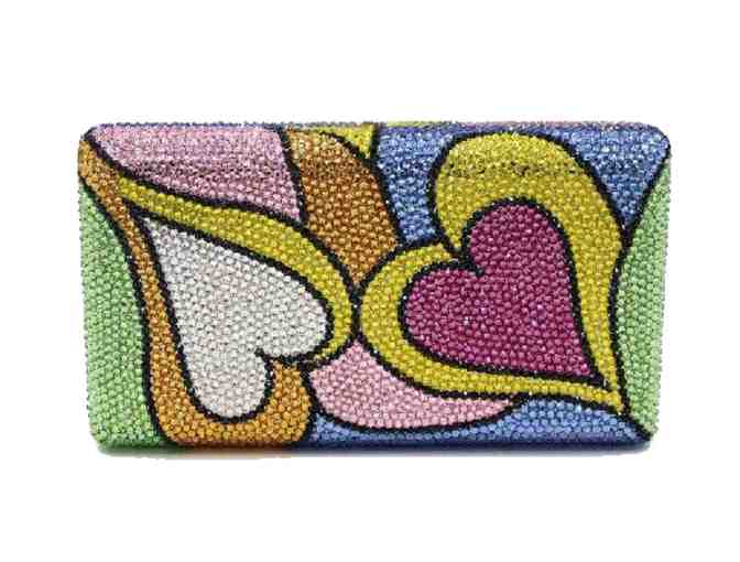 All You Need is Love with beautiful colored hearts of Swarovski Crystals cover this bag.