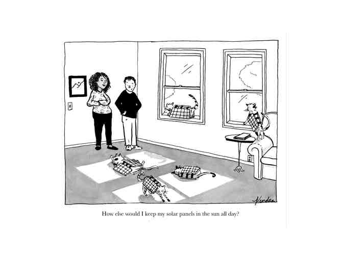 Signed New Yorker Cartoon Print - Solar Panels in the Sun by Kendra Allenby