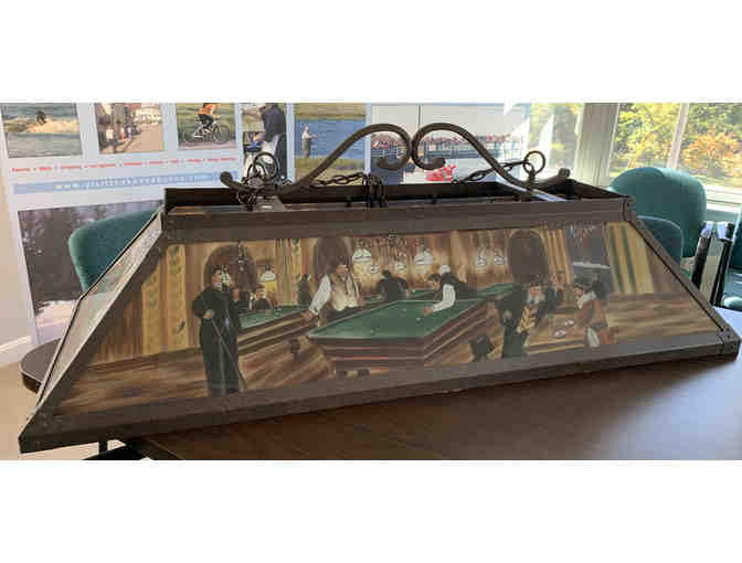 Antique glass billiards table light donated by Arundel Farm Gallery